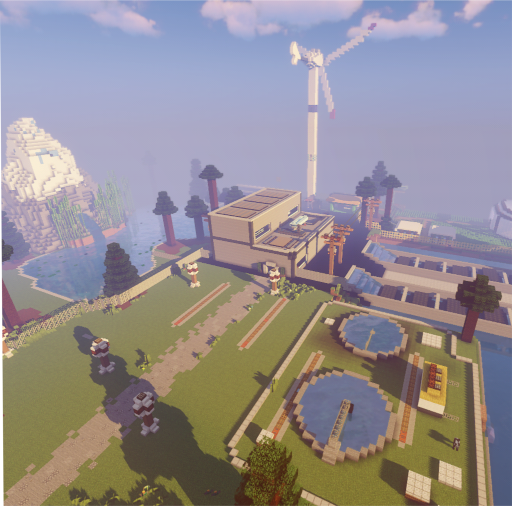 Esta es nuestra obra: una ciudad sostenible construida en Minecraft, una metrópolis que nace de la tierra. Nuestra aventura comenzó calculando nuestra huella de carbono, ese rastro invisible que dejamos en el mundo con cada paso. Pero, como todo rastro, también puede borrarse. Visitamos la página footprintcalculator para comprender cuánto consumíamos, y fue así como trazamos el mapa de nuestro viaje hacia una ciudad ideal, una ciudad que respira junto a la naturaleza.